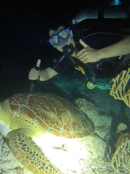 Bucea de noche para ver a los peces cazar y como la vida marina se activa al atardecer, realizando dos inmersiones